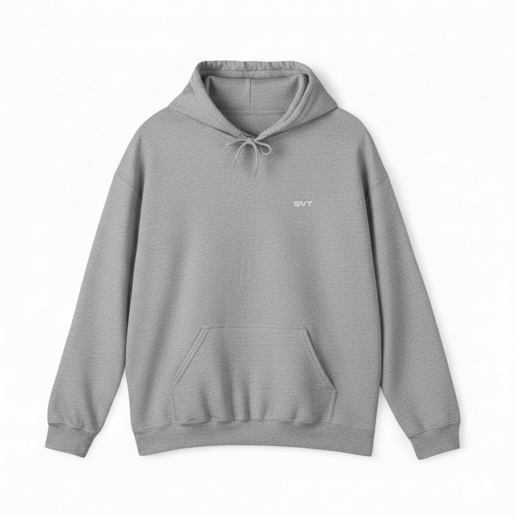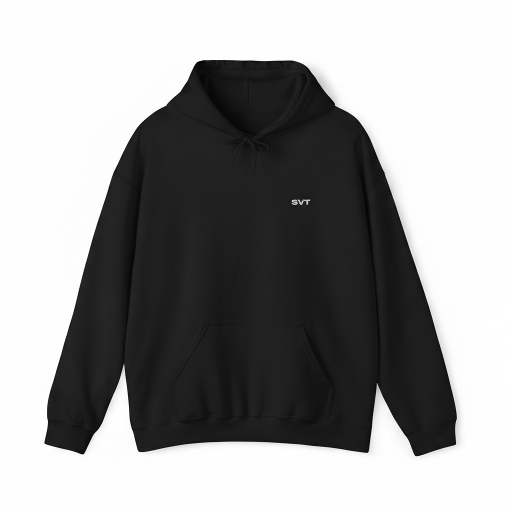 A hoodie that works every day. Clean fit, premium feel, no styling needed. Micro embroidered SVT on chest.
